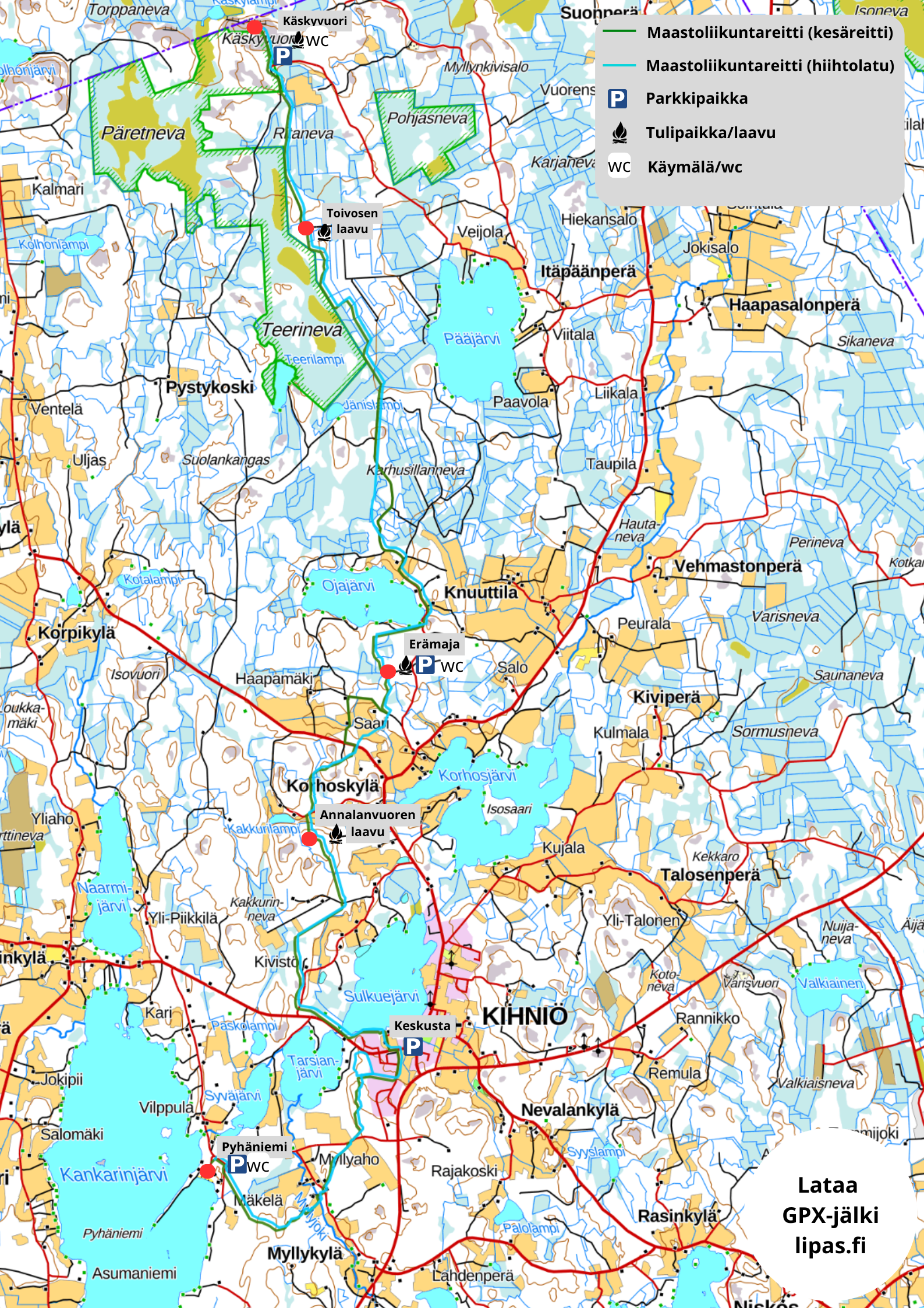 Kaikki Kihniön reitit löytyvät kätevästi Lipas.fi-liikuntapaikkajärjestelmästä.